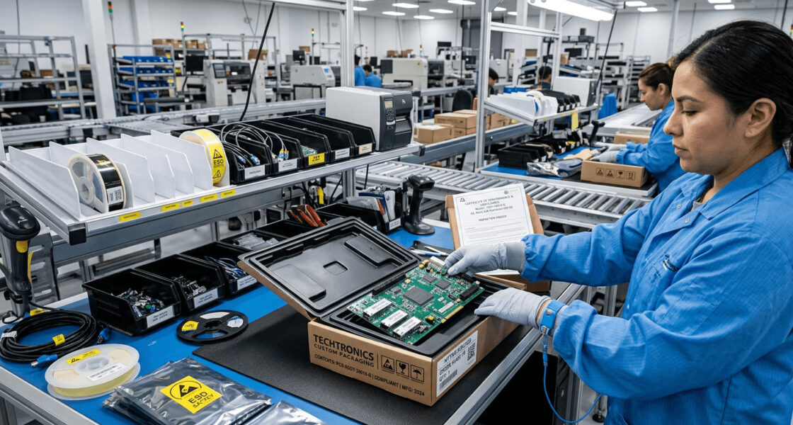 Die Verpackungsdienstleistungen von TPS Elektronik umfassen kundenspezifisches Kitting und ESD-sicheres Umpacken. Wir können komplette „Projekt-Kits“ liefern, die alle notwendigen Netzteile, Kabel und Baugruppen enthalten, die für einen bestimmten Aufbau erforderlich sind, gekennzeichnet mit Ihren internen Teilenummern und Barcodes. Dieser Plug-and-Play-Ansatz reduziert die Handhabungszeit in Ihrer Fertigung drastisch und stellt eine äußerst praktische Kostenreduzierung im Einkauf dar.